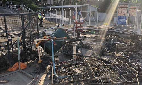 Rioters leave a mess at the No.2 Bridge leading to the Chinese University of Hong Kong after they disrupted traffic around the campus in early November. Photo: Wang Wenwen/GT