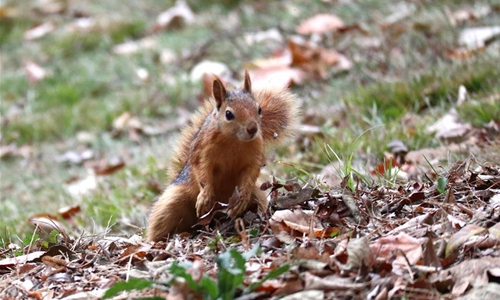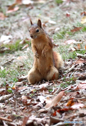 A squirrel searches for food at Emirgan Park in Istanbul, Turkey, Nov. 25, 2019. (Xinhua/Xu Suhui)