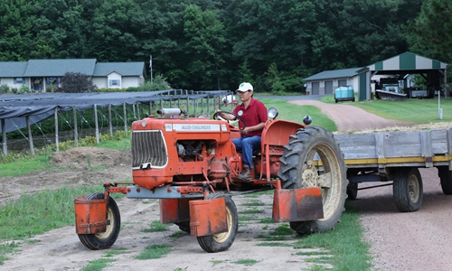 Ginseng grower Jiang Mingtao drives a tractor to inspect his ginseng farmland in Marathon County, Wisconsin, the United States, Aug. 13, 2019. (Xinhua/Liu Yanan)