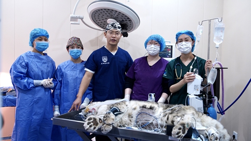 Chinese veterinarians successfully completed the world's first cataract surgery on a snow leopard on Tuesday in Northwest China's Qinghai Province.