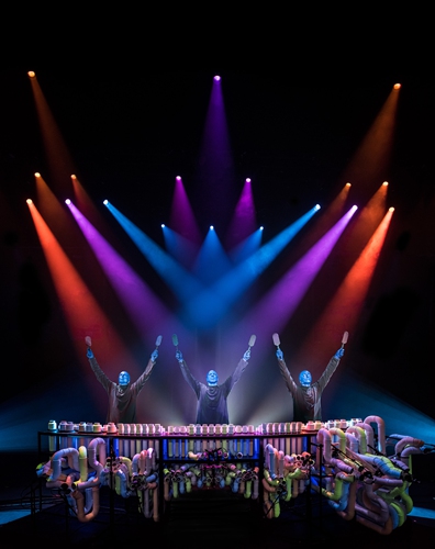 Blue Man Group performs in cities worldwide including New York, Las Vegas, Chicago, Paris, and London.