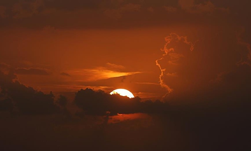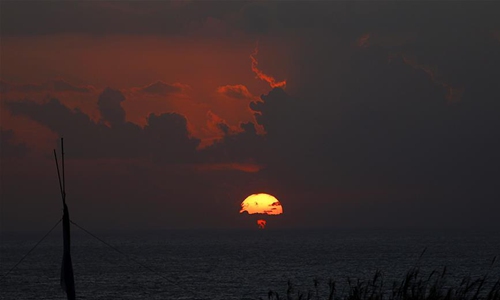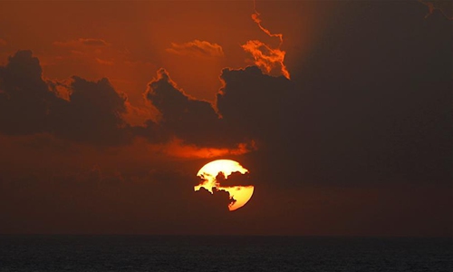The sunset is seen on the seashore of Beirut, Lebanon, on Nov. 28, 2019. (Photo by Bilal Jawich/Xinhua)