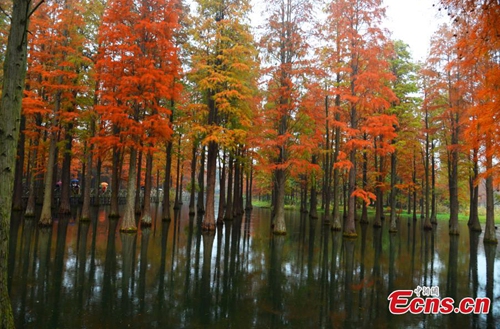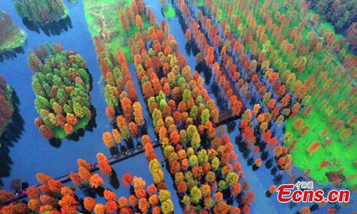 Photo taken on November 30, 2019 shows pond cypress at a park in Qingpu district, Shanghai. (Photo: China News Service/Zhong Xinwang)