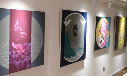 Paintings at the exhibition Photo: Courtesy of Zhi Gang