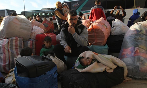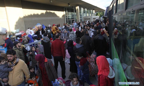 Syrian refugees wait to go on a return trip to their homeland from Lebanon's northern city Tripoli on Dec. 3, 2019. Another group of Syrian refugees returned to their homeland from Tripoli with the help of the Lebanese General Security on Tuesday. (Photo by Khalid/Xinhua)