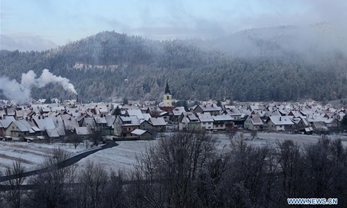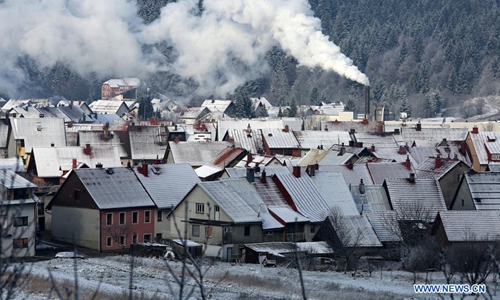 Photo taken on Dec. 3, 2019 shows the snowy scenery of Delnice, a town in the mountainous region of western Croatia. (Goran Kovacic/Pixsell via Xinhua)