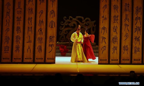 Dancers perform the dance drama "Confucius" at Mariinsky Theatre in St. Petersburg, Russia, Dec. 3, 2019. The dance drama "Confucius", performed by the China National Opera and Dance Drama Theatre, was staged on Tuesday at Mariinsky Theatre. (Photo by Vera Zaraeva/Xinhua)