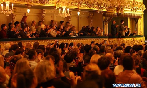 Audience applaud the dance drama "Confucius" at Mariinsky Theatre in St. Petersburg, Russia, Dec. 3, 2019. The dance drama "Confucius", performed by the China National Opera and Dance Drama Theatre, was staged on Tuesday at Mariinsky Theatre. (Photo by Vera Zaraeva/Xinhua)