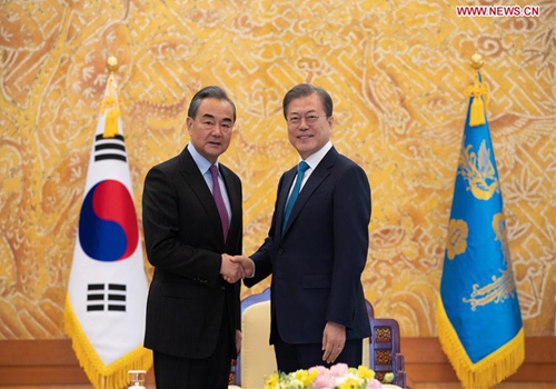 The pledges were made during a meeting between South Korean President Moon Jae-in and visiting Chinese State Councilor and Foreign Minister Wang Yi.