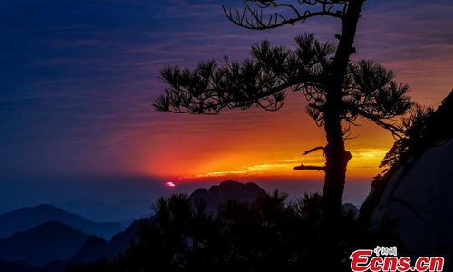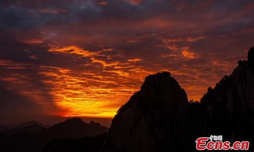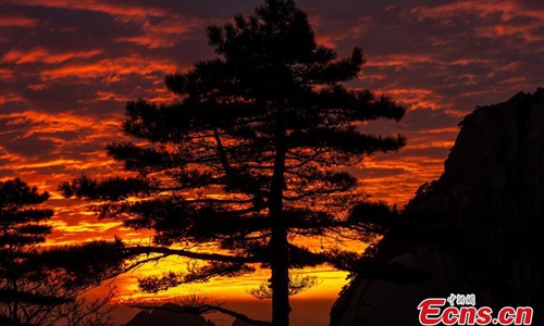 Photo taken on December 5, 2019 shows the amazing scenery of flaming cloud in Huangshan city, East China's Anhui province. Mount Huangshan, a famous natural resort in Eastern China's Anhui province, looks pretty in all seasons. Photo:China News Service