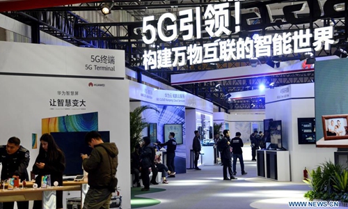 Exhibitors display 5G-powered technologies during a press preview for the 2019 World 5G Convention in Beijing, capital of China, Nov. 20, 2019. The 2019 World 5G Convention will open here on Nov. 21. (Xinhua/Li Xin)