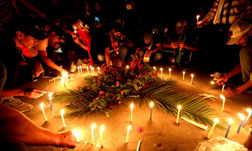 Protesters light candles during a demonstration at Tahrir square in Baghdad, Iraq, on Nov. 2, 2019. (Xinhua/Khalil Dawood)