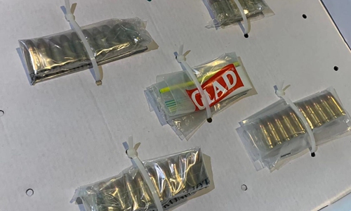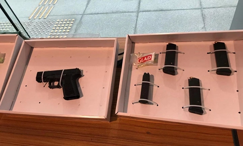 In the Fortress Hill area on the Hong Kong Island, the police seized a 9 mm semi-automatic Glock pistol, which forensic firearm examination shows is in good condition, and five magazines, three of which were already loaded with bullets.
