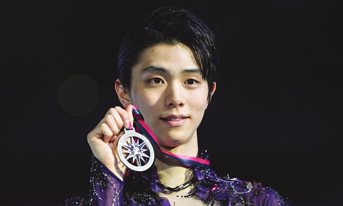 Yuzuru Hanyu poses with his medal at the Grand Prix of Figure Skating Final in Turin on December 7. Photo: VCG