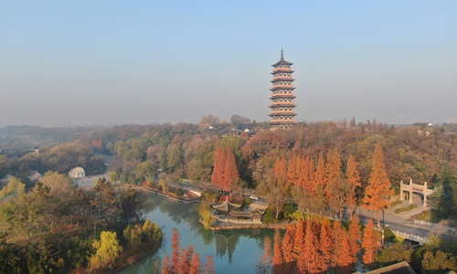 Autumn colors still hold at Slender West Lake in Yangzhou, East China's Jiangsu Province on Sunday. Photo: VCG