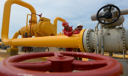 Employees monitor natural gas transmission facilities in Zibo, East China's Shandong Province. File photo: VCG