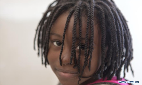 A girl is seen at the Corinth refugee transit camp in Corinth, Greece, on Dec. 8, 2019. Some 90,000 refugees and migrants currently stranded in Greece, including 34,700 on islands, according to the latest official data from Greek authorities. (Xinhua/Marios Lolos)