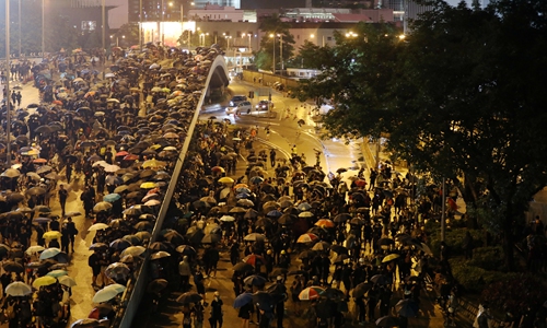 Rioters occupy the streets in a protest in front of the Hong Kong Police Headquarters on August 18. Photo: Cui Meng/GT