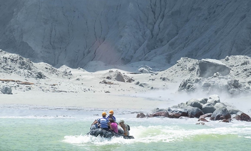 This handout photo courtesy of Michael Schade shows White Island Tour operators rescuing people minutes after the volcano on New Zealand's White Island erupted on Monday. New Zealand police said at least one person was killed and more fatalities were likely after the popular volcano erupted, leaving dozens stranded. Photo: AFP