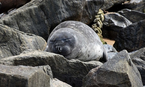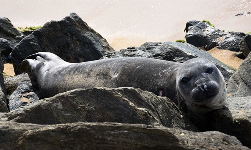 A southern elephant seal is seen in the coastal area of capital Colombo in Sri Lanka, Dec. 9, 2019. (Photo by Gayan Sameer/Xinhua)