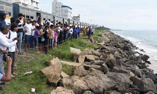 People take photos of a southern elephant seal in the coastal area of capital Colombo in Sri Lanka, Dec. 9, 2019. (Photo by Gayan Sameer/Xinhua)