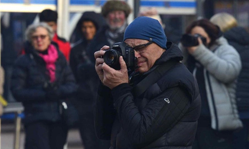 Australian tourists take photos at the ancient city of Kashgar, northwest China's Xinjiang Uygur Autonomous Region, Dec. 9, 2019. The ancient city of Kashgar, with its well preserved traditional features, attracts tourists from all over the world. According to the official data, the ancient city has received nearly 1.35 million visits by Dec. 1 this year, an over 60% jump compared to the same period last year. (Photo by Adiljan Abdukadir/Xinhua)