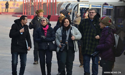 Australian tourists visit the ancient city of Kashgar, northwest China's Xinjiang Uygur Autonomous Region, Dec. 9, 2019. The ancient city of Kashgar, with its well preserved traditional features, attracts tourists from all over the world. According to the official data, the ancient city has received nearly 1.35 million visits by Dec. 1 this year, an over 60% jump compared to the same period last year. (Photo by Adiljan Abdukadir/Xinhua)