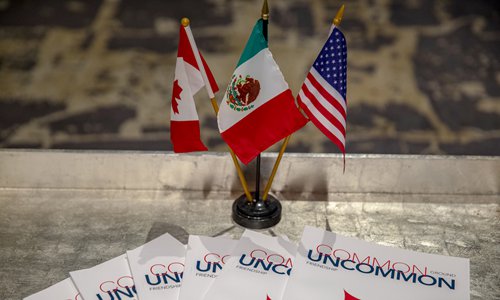 Flags of the US, Mexico and Canada at Prospects for USMCA Ratification Trilateral Dialogue on February 21 in Washington DC Photo: AFP