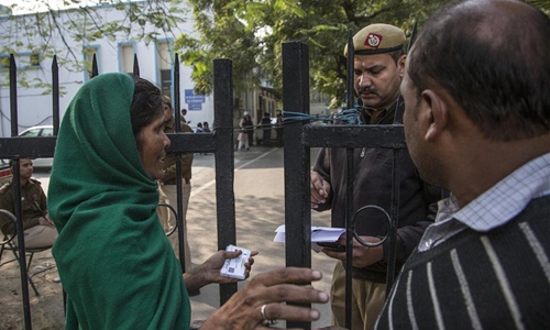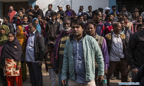 Relatives of fire victims enquire about bodies outside a mortuary in New Delhi, India, Dec. 9, 2019. A fire broke out on Sunday inside a four storey building in north Delhi's "Filmistan" area, leaving at least 43 people dead. (Xinhua/Javed Dar)