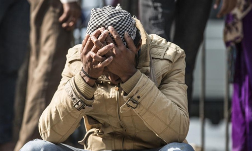 A relative of fire victims waits outside a mortuary in New Delhi, India, Dec. 9, 2019. A fire broke out on Sunday inside a four storey building in north Delhi's "Filmistan" area, leaving at least 43 people dead. (Xinhua/Javed Dar)