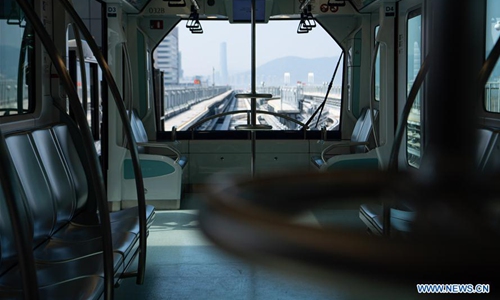 Photo taken on Dec. 10, 2019 shows the inside view of a light rail train in south China's Macao Special Administrative Region. The light rail in Macao opened to public on Tuesday. (Xinhua/Cheong Kam Ka)