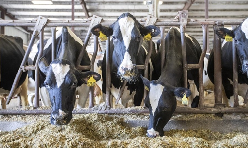 Cows eat grass at a dairy farm run by Kelly D. Cunningham in rural Cass County of the U.S. state of Iowa, Oct. 16, 2019. (Xinhua/Wang Ying)