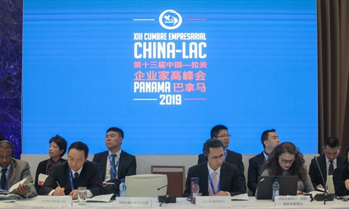 Government representatives attend the plenary session of the 13th China-Latin America and the Caribbean Business Summit in Panama City, capital of Panama, on December 10, 2019. (Xinhua/Mauricio Valenzuela)