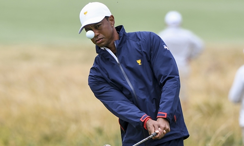 US team captain Tiger Woods hits to the green in Melbourne on Wednesday during a practice round ahead of the Presidents Cup starting Thursday. Photo: AFP