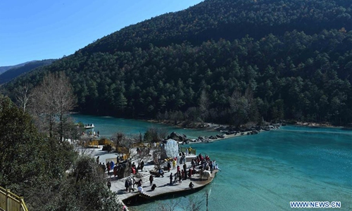Tourists visit the Blue Moon Valley in Lijiang, southwest China's Yunnan Province, Dec. 10, 2019. (Xinhua/Yang Zongyou)