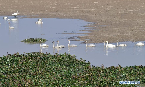 Swans rest in Fuhe River in Sanjiang Township, Nanchang County, east China's Jiangxi Province, Dec. 11, 2019. (Xinhua/Peng Zhaozhi)