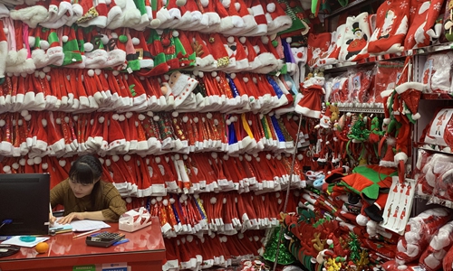 Cai said that Yiwu sellers are not concerned by the tariff changes, as they have successfully expanded their business channels around the globe. Nowadays, only about 5 percent of Yiwu's Christmas-product exports are bound for the US market, he said, adding that business with emerging markets like Peru and Guatemala is growing very quickly.