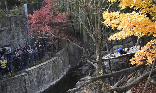 Visitors watch the U.S.-born male giant panda Bei Bei at the Smithsonian's National Zoo in Washington D.C., the United States, on Nov. 11, 2019. A weeklong farewell party for Bei Bei, who is to depart the zoo for China later this month, kicked off here on Nov. 11. In 2019, while the bilateral relationship between China and the United States is going through some rough patches at the national level, wide-ranging exchanges and cooperation at the subnational level have not been losing steam. Photo: Xinhua