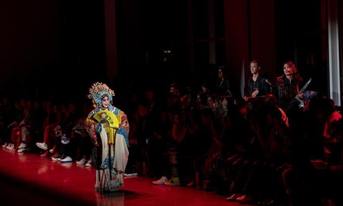 An artist performs at the "PONY X HARBIN" show during the New York Fashion Week in New York, the United States, Feb. 9, 2019. The show started with a short music piece that was a fusion of Peking Opera and R&B, followed by a catwalk show debuting collection jointly presented by Chinese brand Harbin Beer and American sports brand PONY. In 2019, while the bilateral relationship between China and the United States is going through some rough patches at the national level, wide-ranging exchanges and cooperation at the subnational level have not been losing steam. Photo: Xinhua