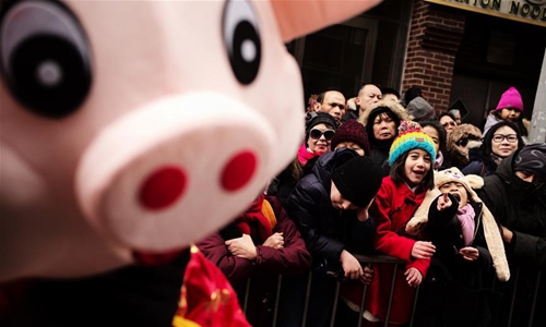 People watch the Chinese Lunar New Year parade in Manhattan's Chinatown of New York City, the United States, Feb. 17, 2019. In 2019, while the bilateral relationship between China and the United States is going through some rough patches at the national level, wide-ranging exchanges and cooperation at the subnational level have not been losing steam. Photo: Xinhua