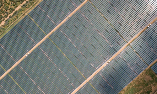 Aerial photo shows the 50 MW solar power farm in Garissa, Kenya, on Dec. 13, 2019. (Xinhua/Xie Han)