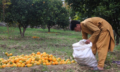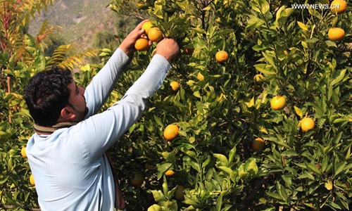 An Afghan man works at an orange garden in Shigal district of Kunar province, eastern Afghanistan, Dec. 14, 2019. (Photo by Emran Waak/Xinhua)