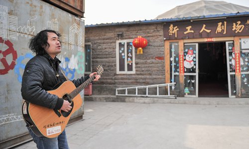 A migrant worker plays guitar at Migrant Workers Home in Picun village, Beijing's Chaoyang district. Photo: VCG
