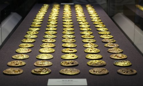 285 gold cakes are unearthed from the Haihun marquis tomb in Nanchang, East China's Jiangxi Province, each of which is 0.25 kilograms. Photo: IC