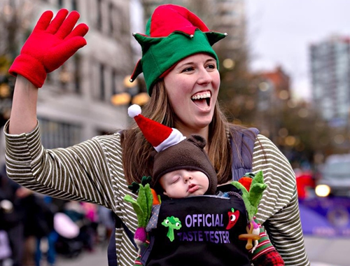 People enjoy the 16th annual Santa Claus parade on Columbia Street in New Westminster, Dec. 15, 2019. The annual parade was held in the historic suburb of Vancouver to ring-in the festive Christmas season. (Photo by Andrew Soong/Xinhua)