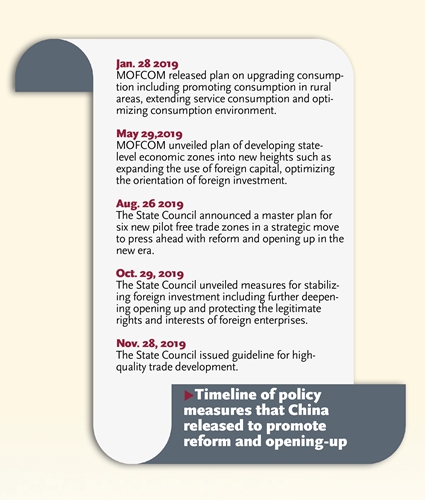 Domestically, major policy initiatives could be expected from the MOFCOM in the new year to further open the domestic market for foreign investors, according to Li Yong, deputy chair of the expert committee of the China Association of International Trade, which is affiliated with the MOFCOM.