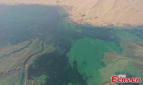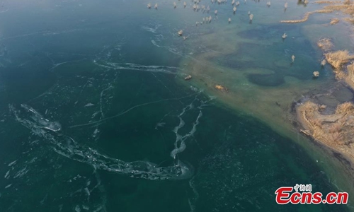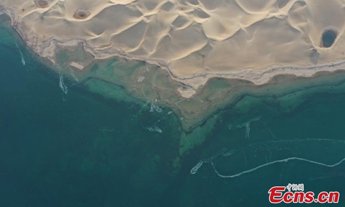 Aerial photo shows an winter view of Lop Lake in Yuli County, northwest China's Xinjiang Uygur Autonomous Region. (Photo: China News Service/ Zhong Yanming)