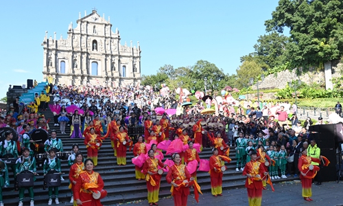 Hosted by the culture department of Macao Special Administrative Region, the 2019 Macao International Parade takes place on December 8 at the Ruins of St. Paul's. Photo: cnsphoto