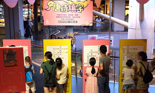Chinese students try to solve puzzles related to Tang Dynasty (618-907) poetry. Photo: CNSphoto