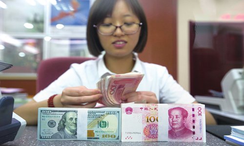 An employee counts banknotes at a bank in Taiyuan, North China's Shanxi Province, on August 2. Photo: VCG
